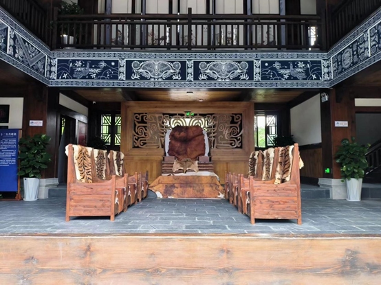 苗王宮,作為苗族文化的象征,始建于明朝,歷經(jīng)數(shù)百年風(fēng)雨,依舊巍然矗立。這里曾是苗族領(lǐng)袖的居所,不僅承載著苗族人民的智慧和精神,更見證了這個民族的輝煌與滄桑。石海苗王宮是清初有"川南苗王"之譽的興文苗族長老舊寨,屬典型的干欄式建筑,現(xiàn)于舊址復(fù)建的苗寨,占地約1萬7千平方米,以欄桿式建筑為特色,按廊庭式組合型園林總體布局,所有建筑均為全木結(jié)構(gòu),青石鋪地,樹皮蓋頂,展示出了苗族人親近自然,融于自然的理念和智慧。