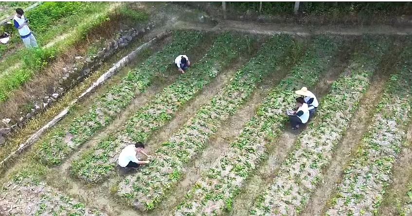 圖為實(shí)踐團(tuán)成員監(jiān)測沙姜植株生長情況