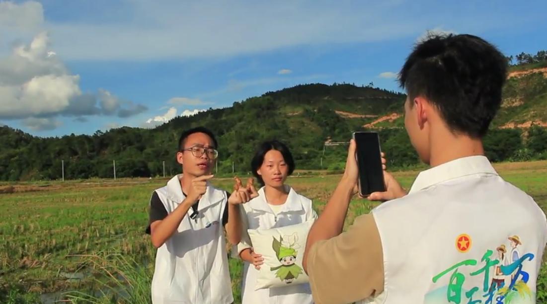 圖為實(shí)踐團(tuán)成員在田地間直播宣傳沙姜