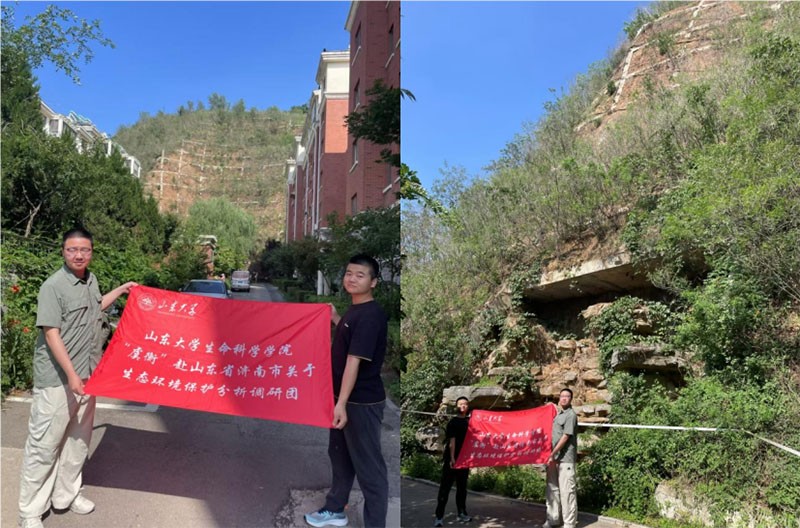 7月21日,山東大學(xué)生命科學(xué)學(xué)院“虞衡”實(shí)踐團(tuán)小組成員在接收單位負(fù)責(zé)人的帶領(lǐng)下對(duì)濟(jì)南市高新區(qū)王八蓋子山北側(cè)石灰?guī)r礦礦山復(fù)綠工程進(jìn)行實(shí)地調(diào)研。