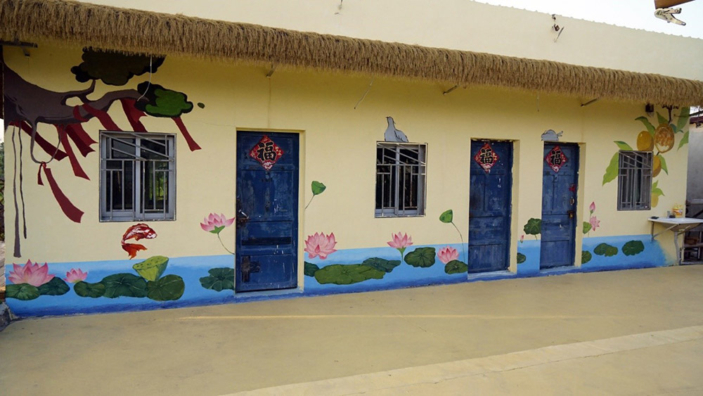 經(jīng)過為期六天的辛勤創(chuàng)作,實(shí)踐隊(duì)成員們頂著烈日,不畏辛勞,全身心投入到墻繪創(chuàng)作中。實(shí)踐隊(duì)分工明確,有負(fù)責(zé)勾勒輪廓,有負(fù)責(zé)上色填充,還有則負(fù)責(zé)細(xì)節(jié)修飾。每一筆、每一劃都凝聚著他們對藝術(shù)的熱愛和對鄉(xiāng)村的深情。最終實(shí)踐隊(duì)成功繪制了充滿當(dāng)?shù)靥厣奈幕瘔ΓL制面積達(dá)100平方米,此次墻繪活動(dòng)不僅旨在美化鄉(xiāng)村環(huán)境,也是為了豐富村民們的精神文化生活。