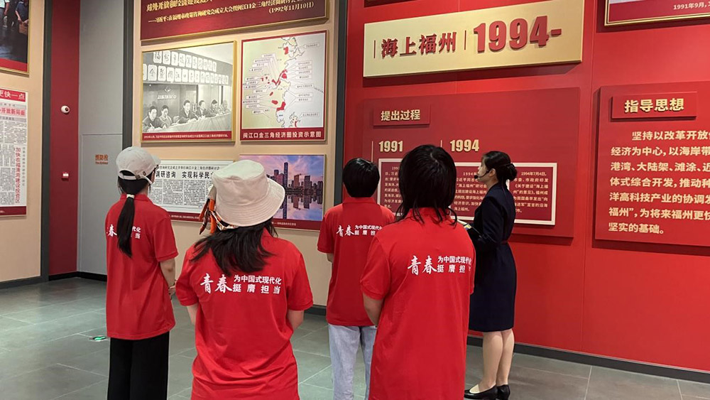 圖為實(shí)踐隊(duì)成員參觀福州市委黨校“3820”戰(zhàn)略工程展覽館。吳思融 攝