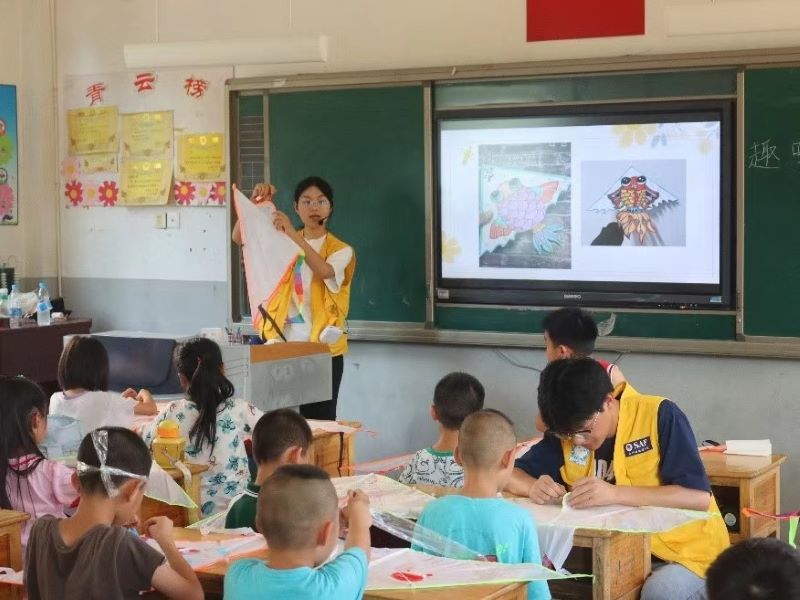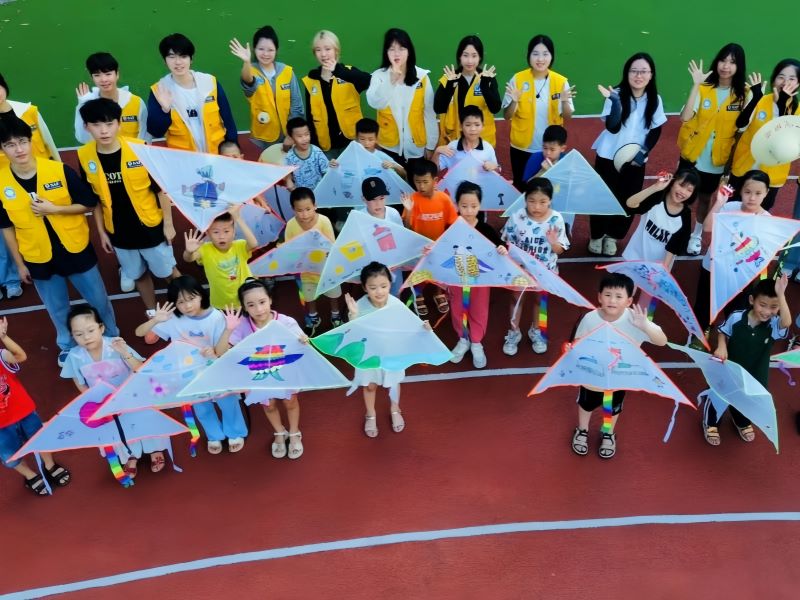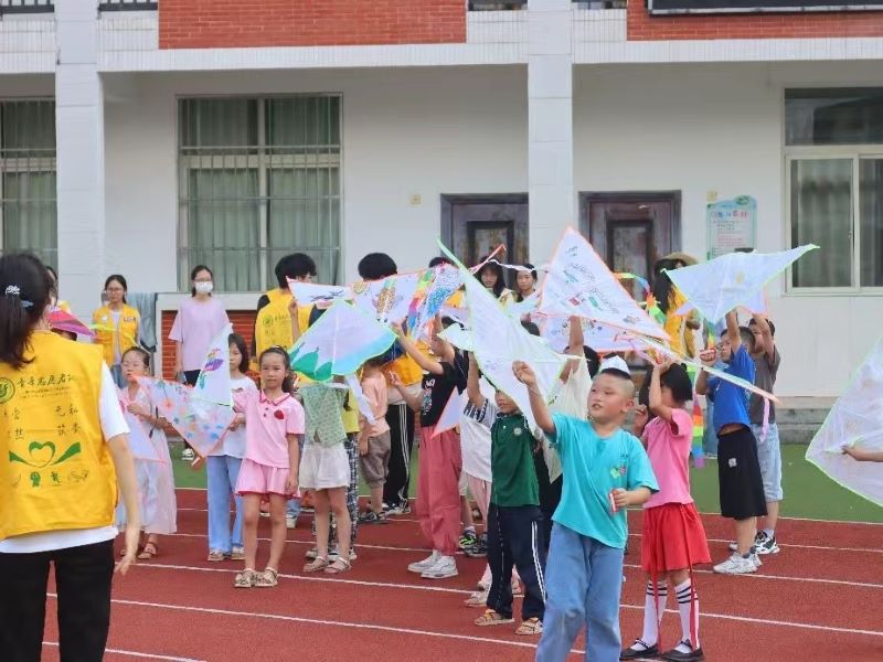 為了幫助小朋友們更好地發揮想象力和創造力,“助學助農興鄉村,譜寫泰寧新篇章”支教隊的老師們帶領著朱口鎮第一中心小學低年級的小朋友們順利完成了風箏的繪畫,并在體育課上放飛風箏,此次課程既提高了小朋友們的動手能力,又創新了體育課的教學形式。