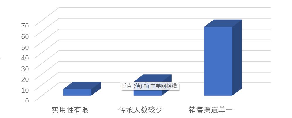 在采訪的83人中,9人表示傳統(tǒng)手工藝品在現(xiàn)代生活中的實(shí)用性和市場需求有限,13人反映現(xiàn)在年輕人由于傳統(tǒng)手工藝學(xué)習(xí)周期長,制作工藝復(fù)雜,手工制作難敵機(jī)器生產(chǎn),對于學(xué)習(xí)傳統(tǒng)手工藝的興致不高,近80%(65人)反映他們制作的手工藝品銷售渠道單一,僅停留在集市、景點(diǎn)攤位等。