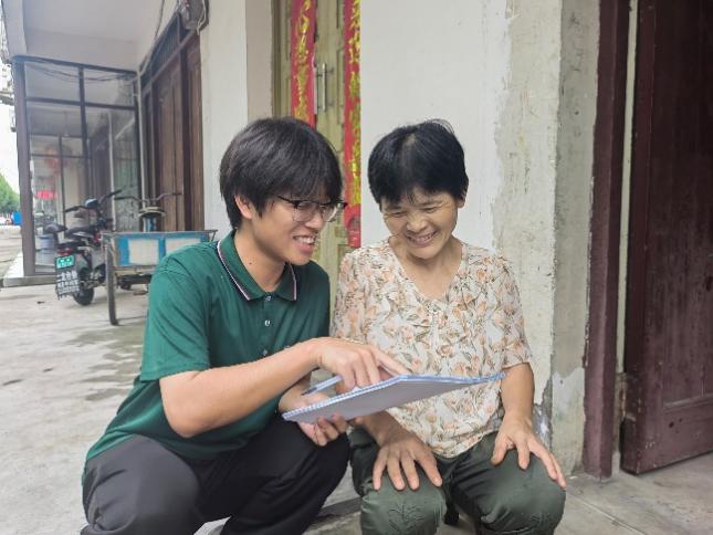 圖為實(shí)踐隊(duì)成員在同大鎮(zhèn)開展有關(guān)醫(yī)保政策和分級(jí)診療制度的問卷調(diào)研。中國(guó)青年網(wǎng)通訊員 柳看看 攝