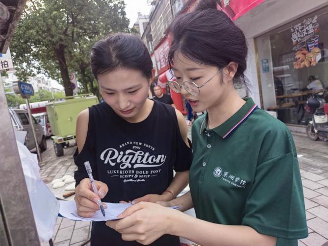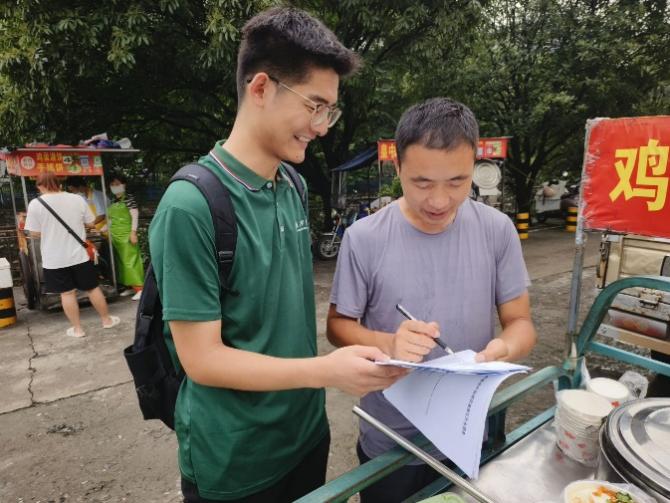 圖為實(shí)踐隊(duì)成員在草城街開展關(guān)于分級(jí)診療制度的線下調(diào)研。中國(guó)青年網(wǎng)通訊員 張子怡 攝