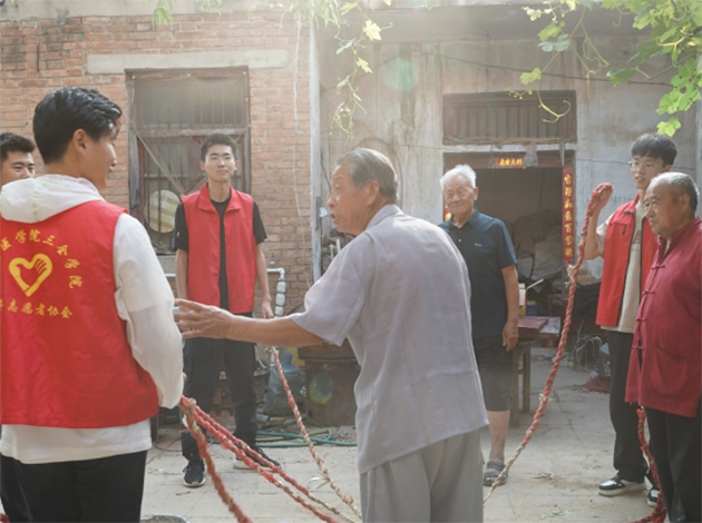 7月5日下午,新鄉醫學院三全學院赴鄭州中牟“豫見黃河之南,助力文旅新村”實踐團訪問了萬灘鎮三劉寨村“黃河打號子”非遺繼承人王張來,通過溝通了解到王老師是第四代“黃河打號子”繼承人。從學徒的口中得知,這“黃河打號子”有著悠久的歷史,可以追溯到清乾隆二十六年,實踐團成員還學習了治水英雄劉統勛英勇事跡,他曾多次勘察黃河、運河河工,革除積弊。王老師為向實踐團展示了當時黃河上打號子的照片,振奮人心。