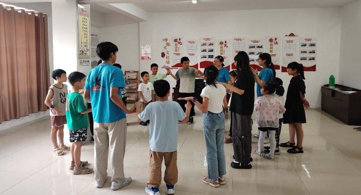 團(tuán)體輔導(dǎo)、手工療愈、放松身心實(shí)踐團(tuán)成員帶領(lǐng)小朋友們開展了團(tuán)體輔導(dǎo)和手工療愈系列活動(dòng)。藝術(shù)療愈和放松訓(xùn)練作為一種心理治療手段,通過對(duì)藝術(shù)的表達(dá)更直觀地感受自己的內(nèi)心以及通過“放松身體來放松心靈”來舒緩自身壓力。在團(tuán)體輔導(dǎo)中,孩子們承載自己夢(mèng)想的紙飛機(jī)和合作共贏的游戲讓孩子們感到歡樂和輕松。在手工療愈活動(dòng)中,孩子們發(fā)揮想象力制作出百花齊放的可愛形象,繪出炫彩亮麗的一幅幅扇子畫。這些制品和畫作承載著孩子們的想象力和創(chuàng)造力,是他們個(gè)人集中意志的體現(xiàn)。