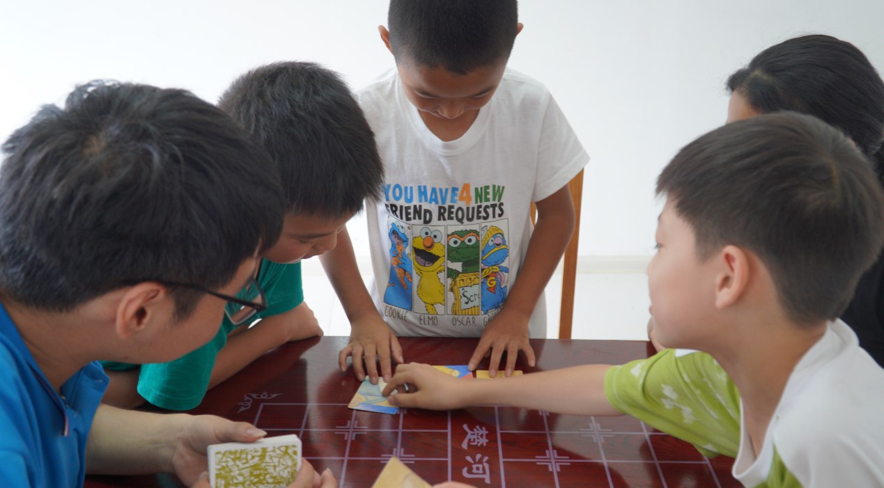 (圖為吳海問同學向小朋友們介紹OH卡的游戲規則 盧皇宇 攝)