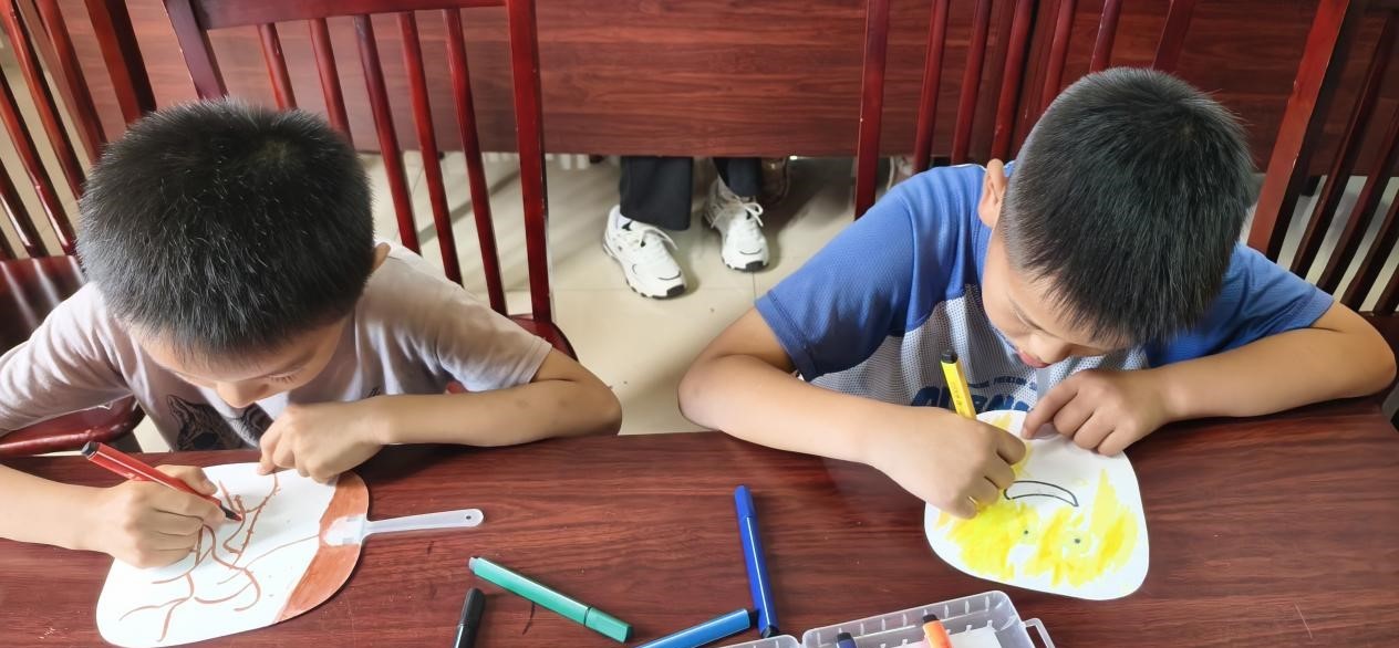 2日后,我隨實踐團與留守兒童的初次見面,首要任務是輔導留守兒童做作業。起初,孩子們對待實踐團像老師一樣敬畏,保持一定的距離感。其中我與其中一個小升初的小朋友結下了不小的緣分,多虧了他讓我很快與小朋友拉進距離。他是我最先認識的小朋友,對他的印象深刻。他非常活潑,從一開始就主動與我們接觸,經常找我們聊天,因為他的緣故我很快就與小朋友熟悉起來。我們帶著他們進行了許多活動,如扇子繪畫、紙飛機大賽等。