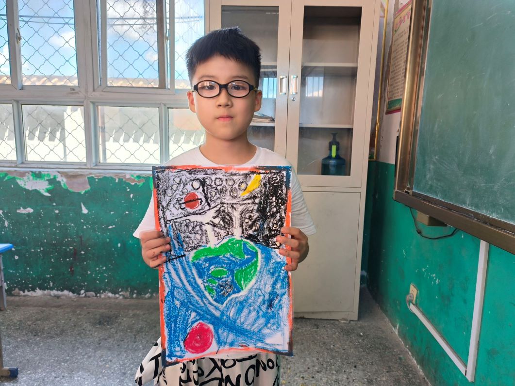 綠色低碳特色課程的第一站是一場關于“溫室效應”的科普講座。隨著大屏幕上播放著一段段生動的動畫視頻,學生們聚精會神地聽著支教團成員深入淺出的講解,仿佛置身于一個奇妙的科學世界之中。隨后,在團隊成員的精心準備下,屏幕上出現了眾多圖表和照片,它們直觀地展示了地球溫室效應的成因及后果,從兩極動物現狀到極端天氣,從蝗蟲災害到土地荒漠化,讓同學們認識到綠色低碳生活的重要性。同時,為了讓“綠色低碳”在學生們心中不再只是一個模糊的名詞,團隊成員讓學生分組動手做環保科學小實驗、玩趣味小游戲如環保飛行棋等,讓學生進一步走進綠色低碳生活。