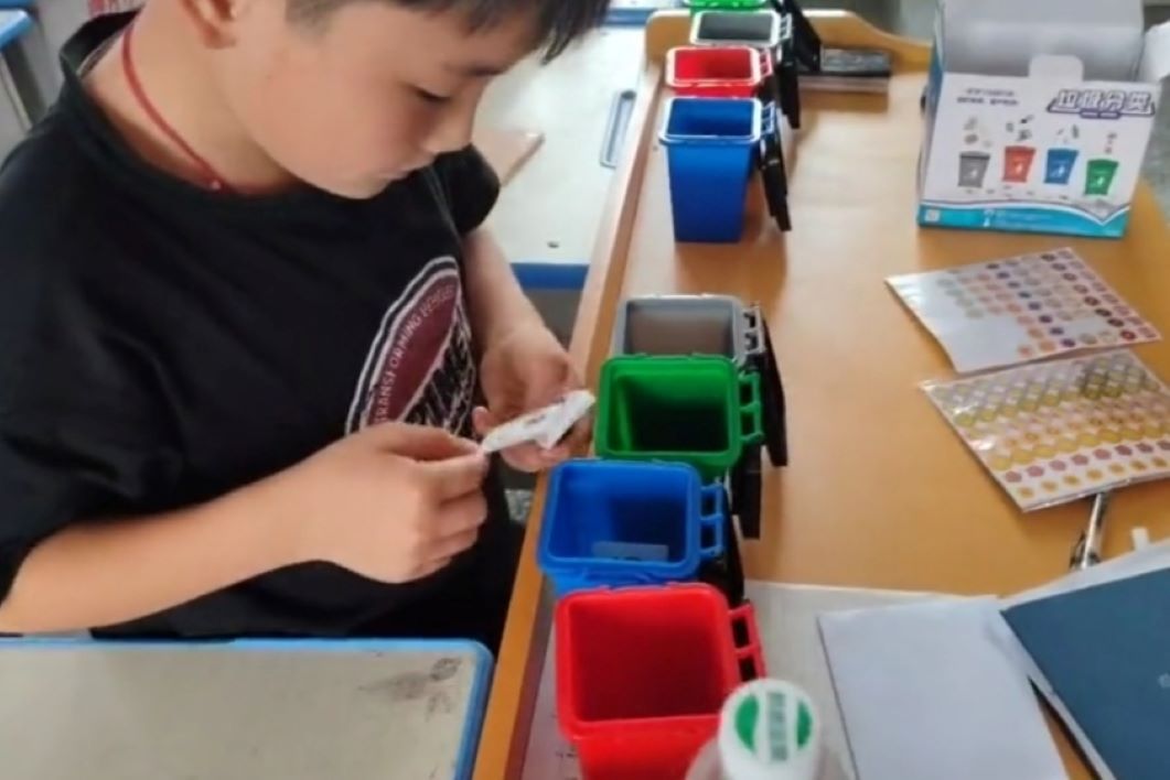 帶著學生初步了解綠色低碳的必要性和重要性之后,團隊成員設計了一場垃圾分類大比拼,在課堂上,學生們被分成了兩個個小組,每組面前擺放著模擬的垃圾桶,以及各種各樣的垃圾卡片。游戲規則是,在限定時間內,各組成員需要將手中的垃圾模型準確地投入相應的垃圾桶中。為了增加游戲的趣味性,老師們還特別設計了一些難度不同的挑戰,例如快速回答關于垃圾分類的問題才能打開垃圾桶蓋子等。通過這種寓教于樂的方式,不僅加深了學生們對垃圾分類的理解,也讓他們明白了每個人都能為減少環境污染做出貢獻。游戲結束后,老師還對表現突出的小組進行了表揚,并頒發了環保小達人的獎狀,以此激勵學生們繼續關注環保問題。