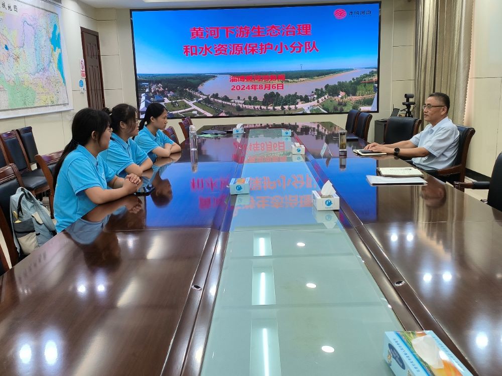 通過與淄博黃河河務局局長武模革座談交流,武局長詳細介紹了黃河下游地區的歷史變遷、生態現狀以及近年來在生態治理方面所取得的成效與挑戰。通過生動的案例分享和詳實的數據展示,實踐團成員們詳細了解了黃河各流域存在的問題以及相應的治理方案,對黃河治理的復雜性和緊迫性有了更為深刻的認識。