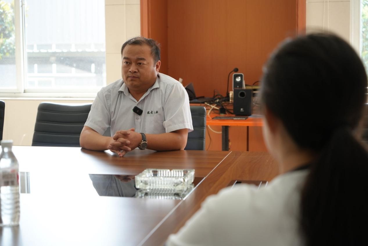 圖為團隊成員采訪負責人鄭士付 楊羽凡攝