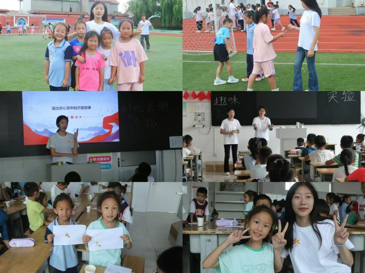 不僅僅是趣味實(shí)驗(yàn),我還走進(jìn)五年級(jí)的美術(shù)課堂,將我們團(tuán)隊(duì)在臨沂市時(shí)所收獲的沂蒙文化的相關(guān)知識(shí)做成PPT,希望孩子們能夠按照自己對(duì)沂蒙文化的理解進(jìn)行繪畫(huà)。看著孩子們開(kāi)心地展示出他們的繪畫(huà)作品,我由衷的為他們感到驕傲。那一刻,我不僅是知識(shí)的傳播者,更是孩子們心靈的引路人。