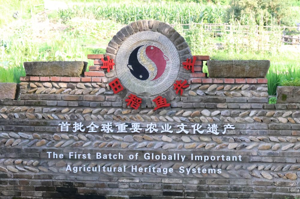 圖為青田稻魚共生首批全球重要農業文化遺產標牌。金懌婷供圖。