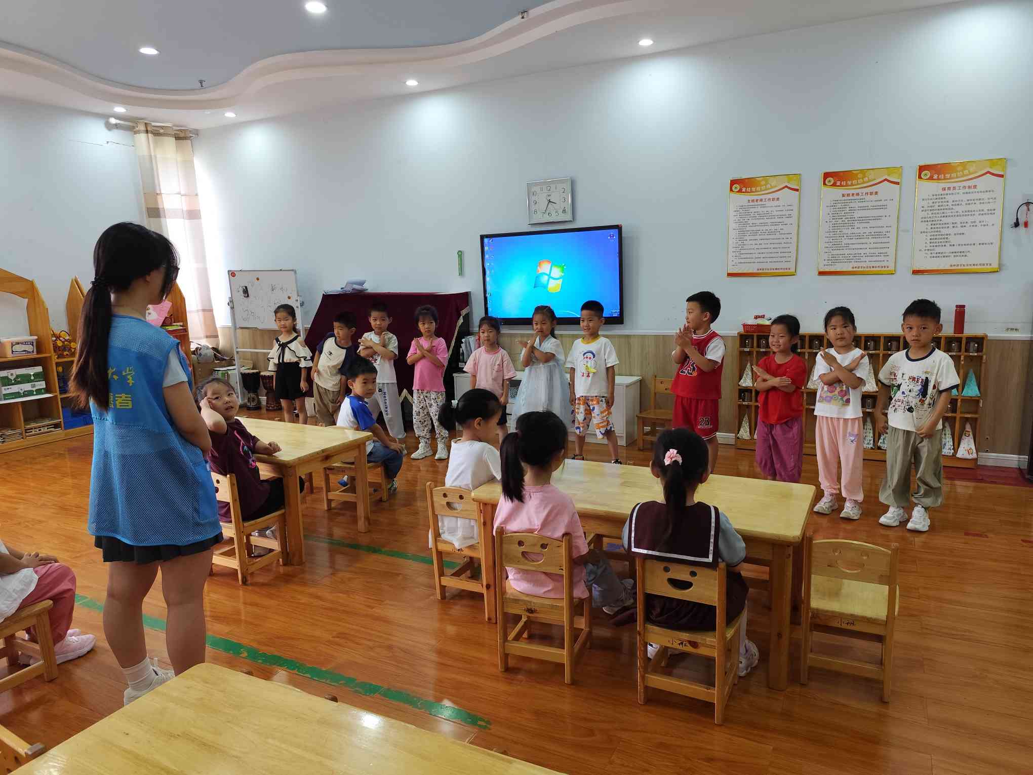 活動伊始,團隊成員以繪本故事《好朋友》作為導(dǎo)入,深入淺出地向小朋友們揭示了友誼的真諦。通過的巧妙引導(dǎo)和互動提問,小朋友們對友誼的理解得到了進一步加深。隨后,團隊成員向小朋友們介紹了“蘿卜蹲”和“切水果”的游戲規(guī)則,引導(dǎo)小朋友們積極參與游戲。在團隊成員的悉心指導(dǎo)下,小朋友們從最初的羞澀拘謹,逐漸投入到游戲中去,在開心的氛圍中拉近彼此之間的距離。小朋友們在活動過程中展現(xiàn)出了極高的興趣,即便在游戲過程中遇到挑戰(zhàn),他們也毫不退縮,以樂觀的態(tài)度繼續(xù)參與。現(xiàn)場歡聲笑語不斷,孩子們在游戲中建立了深厚的友誼,彼此間的距離感在不知不覺中消弭。