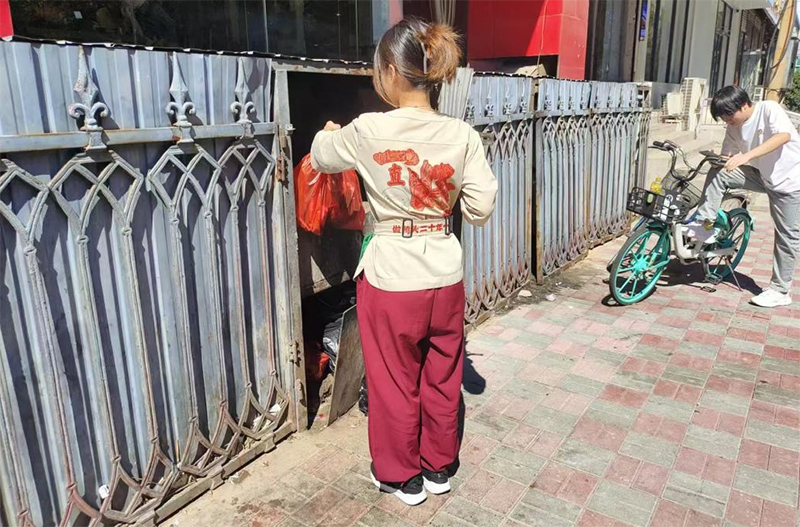 圖為團隊成員進行社區(qū)“環(huán)境清潔日活動” 王夢菲 攝