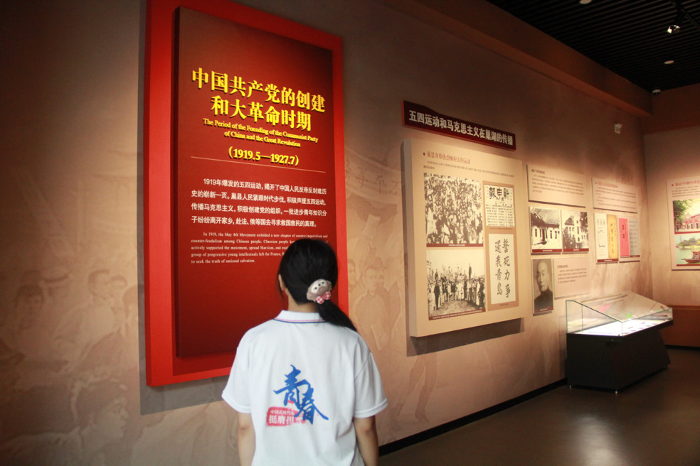圖為團隊成員了解巢縣地區在中國共產黨的創建和大革命時期的歷史事跡。黃彥 供圖