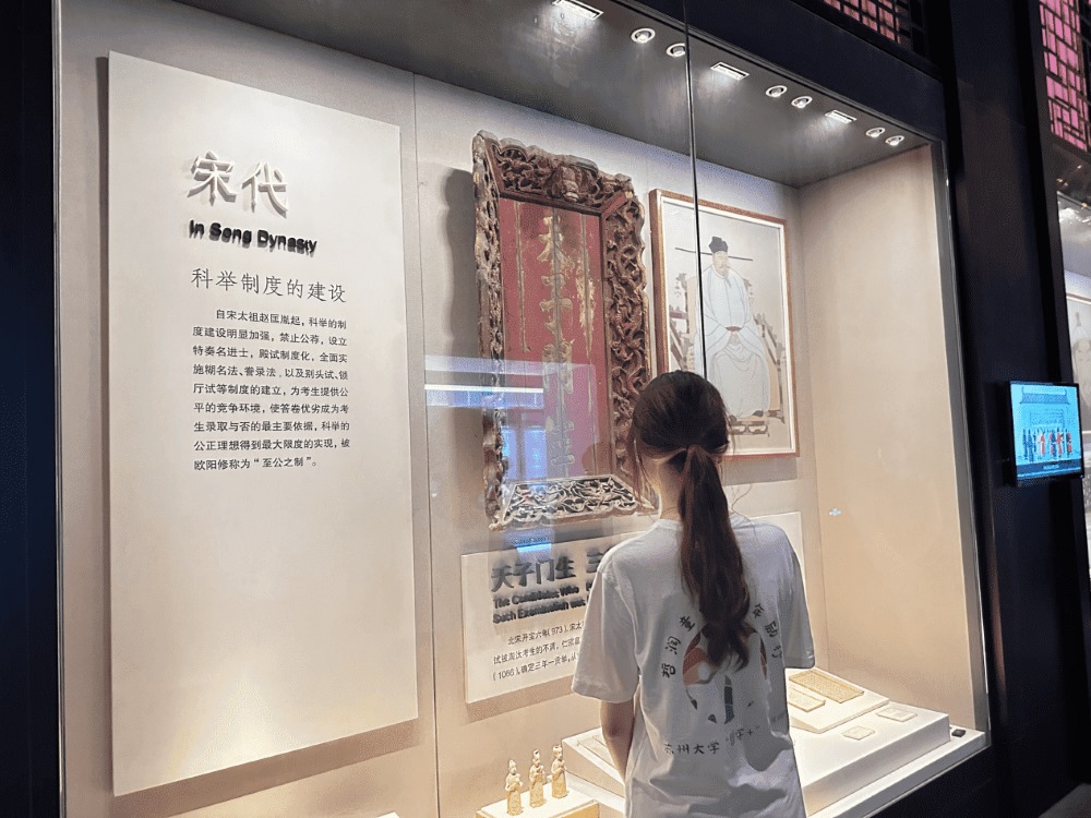 博物館內(nèi),五個展廳依次介紹了科舉制度的發(fā)展脈絡(luò)和歷史影響。從科舉制度的起源、發(fā)展到衰落,再到對后世的影響,每一個階段都有詳盡的展示和深入的剖析。實踐團(tuán)成員們認(rèn)真聆聽工作人員的講解,不時提出自己的疑問和見解。