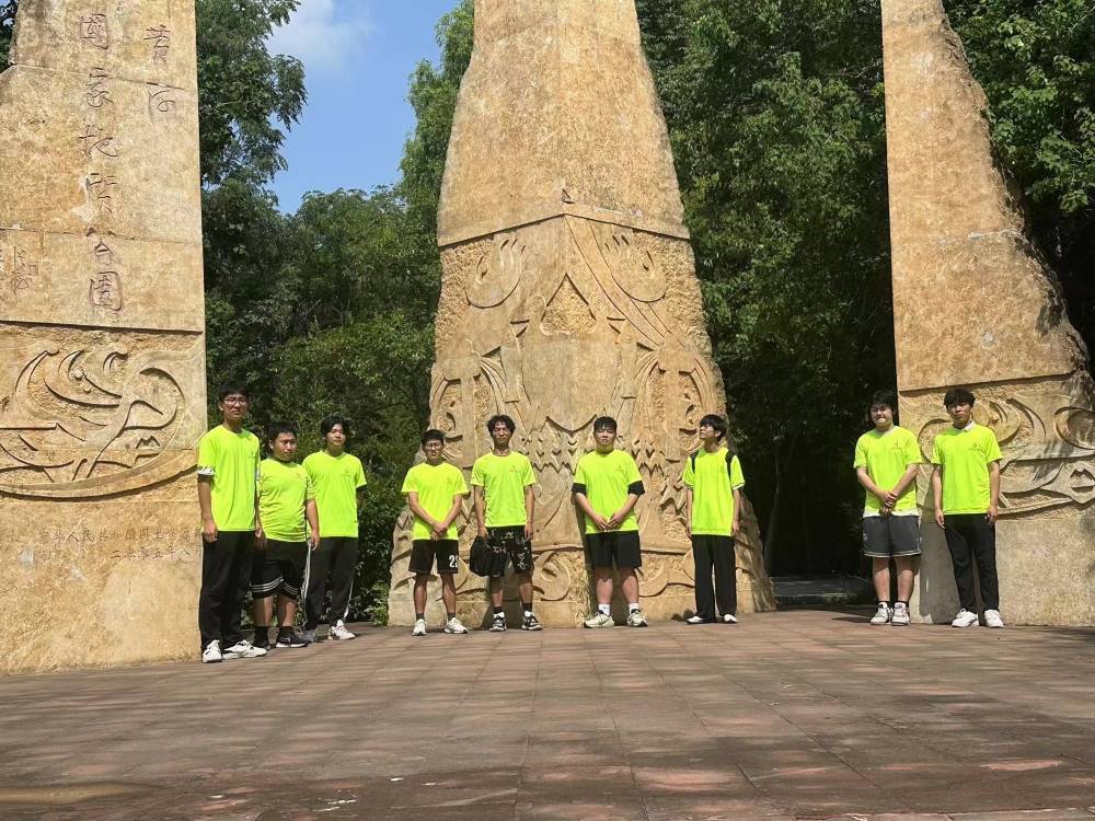 圖為志愿者在地質公園合影留念。通訊員 朱國烽 攝