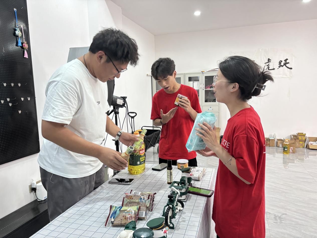 直播正式開始前,在兩位指導老師的安排下實踐團進行了周密的準備工作。實踐團成員提前與雙廟李村的專業的直播團隊進行了深入交流,根據線上銷售特點,對直播流程進行了詳細的規劃和設計,為確保呈現出一個良好的直播效果。從直播的選品、運營管理、直播話術、產品鏈接到互動環節,每一個細節都經過了精心的打磨,特別是選品環節,實踐團精心篩選出來包括核桃油、魚頭醬、常用調料等在內的農產品,以滿足廣大消費者的需求,為有條不穩地開展接下來的直播助農活動奠定了良好的專業基礎。