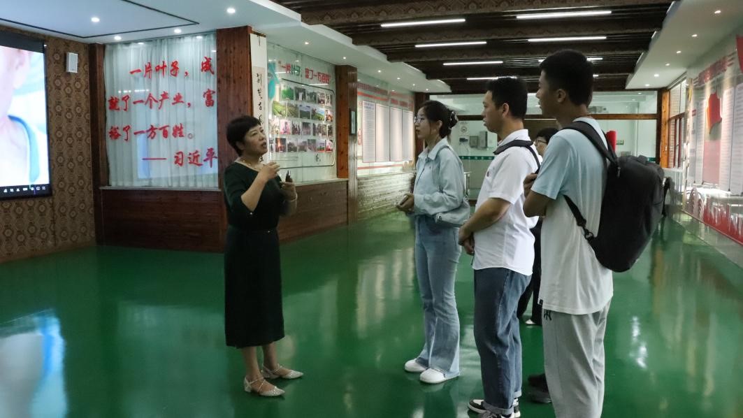 讓青年切身感受改革開放隨后,實踐團來到恩施花枝山生態農業股份有限公司,與公司董事長劉小英一同參觀全自動化制茶車間,追溯恩施玉露歷史,了解花枝茶業發展。