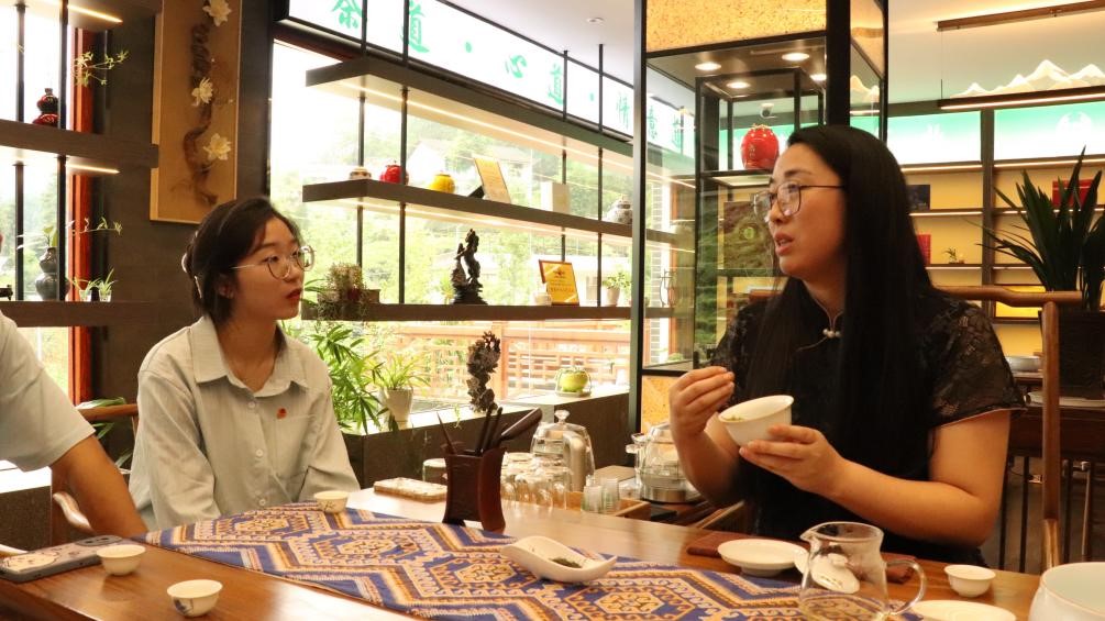 圖為團隊成員和制茶師學習了解恩施玉露 曹明蕊攝