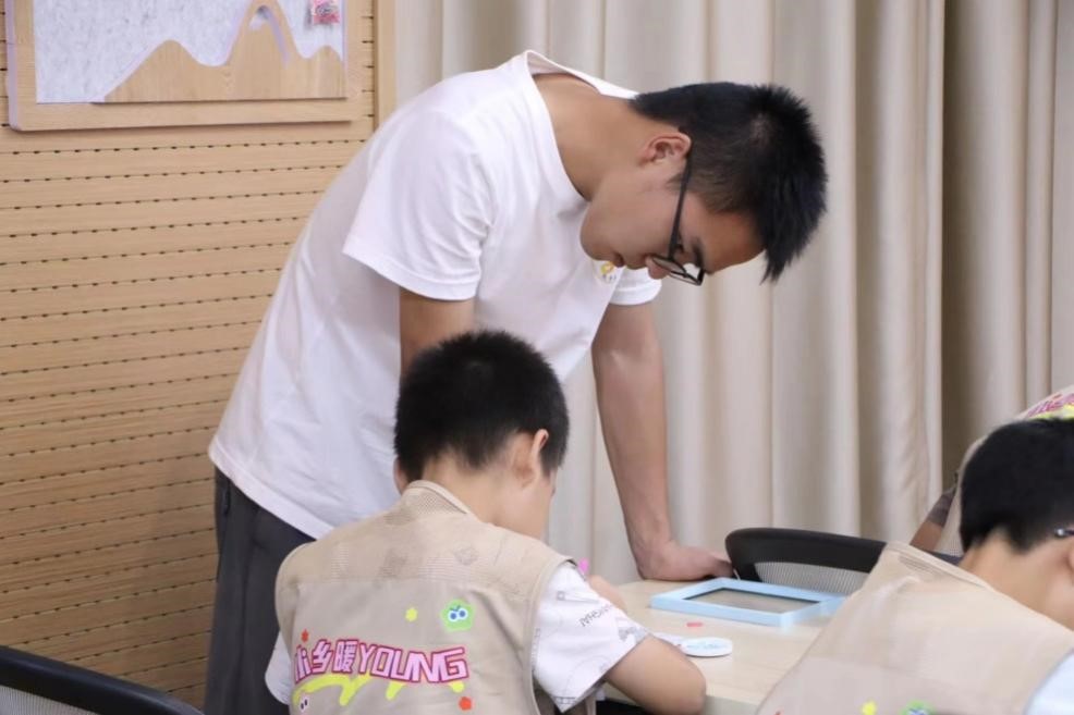 圖為張翊老師指導(dǎo)小朋友完成鉆石畫 通訊員王玉杰供圖