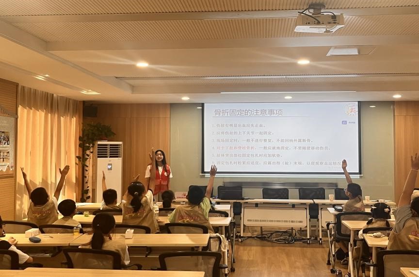 最后一堂課,劉馨怡老師將理論與實(shí)踐巧妙結(jié)合,手把手地傳授了小朋友們創(chuàng)傷止血、創(chuàng)傷包扎、創(chuàng)傷固定以及創(chuàng)傷搬運(yùn)四方面的知識(shí)。日常生活中意外無(wú)處不在,一些看似無(wú)礙的傷情,如果沒(méi)有經(jīng)過(guò)正確、及時(shí)的處理,很有可能出現(xiàn)發(fā)炎感染等情況,最終傷情惡化。因此,掌握創(chuàng)傷后應(yīng)急處理的技巧非常重要。