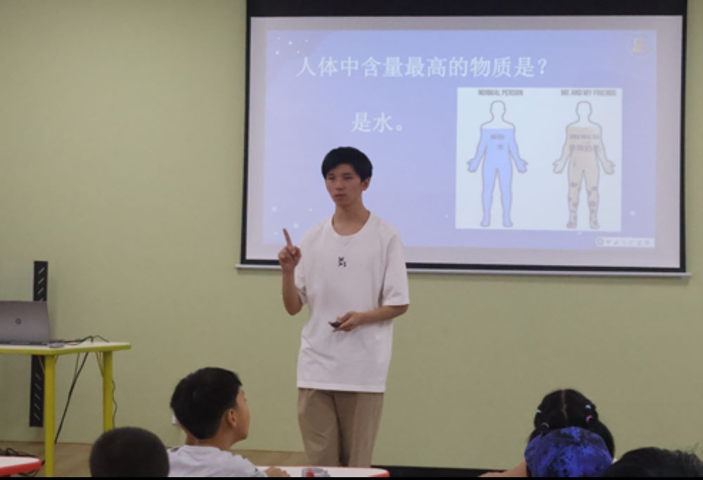 實踐團成員趙伯樂為同學們介紹人體內基本元素 通訊員沈鑫楊 攝