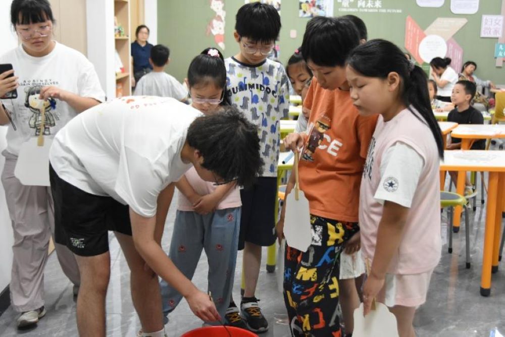 2024年7月30日,蘇州大學暑期社會實踐團隊“樂予樂行”實踐團在江蘇省無錫市江陰市西大街社區居委會開展了第二天的實踐活動。有了第一天活動的破冰,在今天課堂上,小朋友們跟實踐團成員的互動越來越自然。實踐團成員的耐心和小朋友的積極配合,在課堂互動中交織出了一幅美麗的畫卷。
