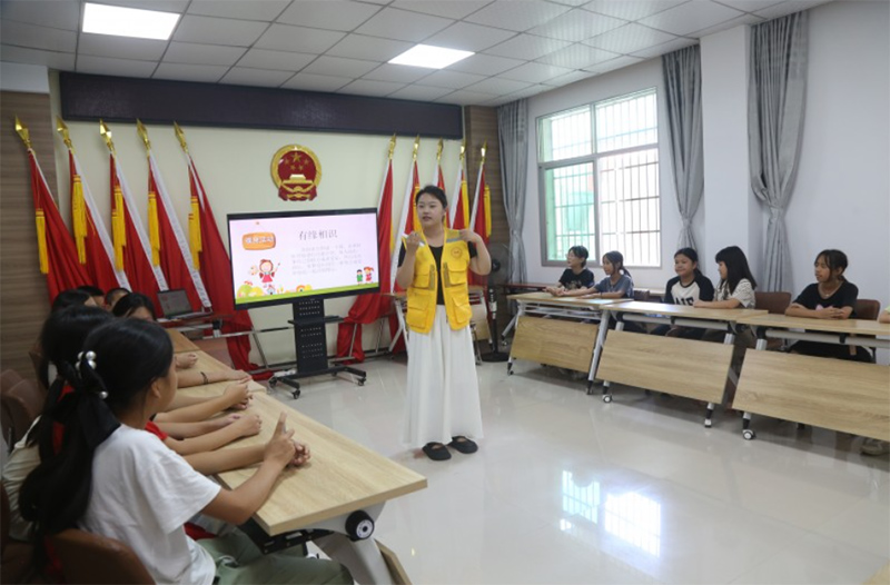 在童心港灣陣地,開展“‘暑’于你的心成長”心理健康知識宣講,用“心”呵護他們的成長;“對校園欺凌SAYNO”引導孩子們不做冷漠的旁觀者、無知的欺凌者、自我輕視的被欺凌者,勇敢向校園欺凌說不;“打敗情緒小怪獸”帶孩子們認識情緒,學習管理情緒。