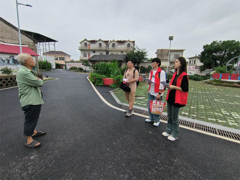 圖為實踐隊員訪談金家莊朱氏祠堂附近村民及后人。通訊員 陳雨彤 供圖。