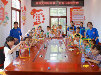 活動中,志愿者們巧妙利用五彩斑斕的吸管作為教具,結合當地方言特色,設計了一場創意吸管搭建活動。在志愿者的引導下,小朋友們發揮無限想象,通過“一擺、二拼、三壘”的簡單步驟,將平凡的吸管變身為形態各異的幾何模型,有的宛如巍峨的城堡,有的則似橫跨天際的橋梁,更有的如即將升空的火箭,創意無限,令人嘆為觀止。
