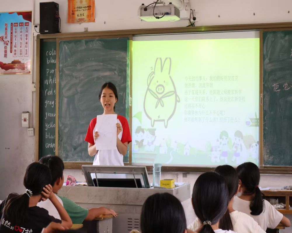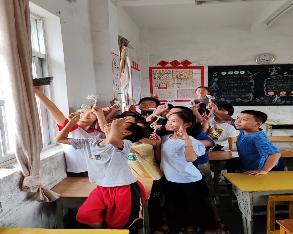 客家大學(xué)生心心筑夢(mèng)支教隊(duì)在課程上以趣味語(yǔ)數(shù)英?特色課為主,隊(duì)員們結(jié)合自身專(zhuān)業(yè)背景和學(xué)情調(diào)研,設(shè)計(jì)了法理、京劇賞析、國(guó)際新聞、趣味地理、人生拍賣(mài)會(huì)等近130種創(chuàng)意課程,旨在幫助學(xué)生拓展眼界、豐富見(jiàn)識(shí)。