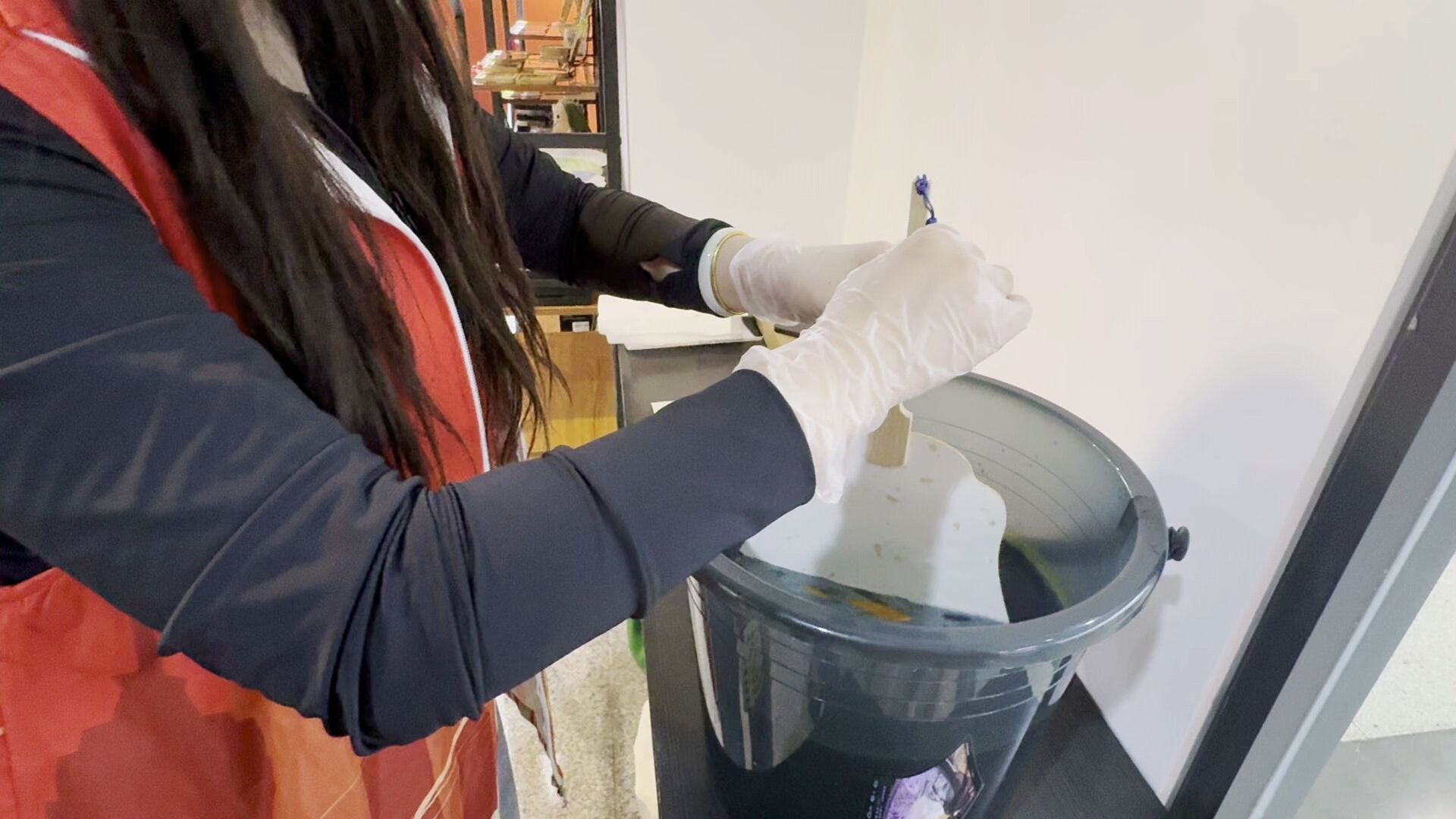 最后,實踐隊員們來到了漆扇藝術體驗館。漆扇,作為中華傳統(tǒng)文化中的璀璨明珠,憑借其獨特的藝術韻味與精湛的制作技藝而享譽四方。以扇子為載體,巧妙融合國家級非物質文化遺產(chǎn)——漆染工藝手工染制而成。非遺工作室的老師為大家詳細講解了漆扇的歷史、制作流程及技藝精髓。據(jù)悉,漆扇的歷史可追溯至兩千余年前的楚國時期,而其技藝更在18世紀廣州外銷至歐洲的家具中大放異彩,廣受贊譽。通過老師的深入講解,隊員們對漆扇有了更為全面而深刻的認識。隨后,在親身體驗中,一把把色彩斑斕、獨具個性的漆扇在隊員們手中應運而生,它們不僅是藝術創(chuàng)作的結晶,更是對中華民族傳統(tǒng)文化的一次深情致敬。
