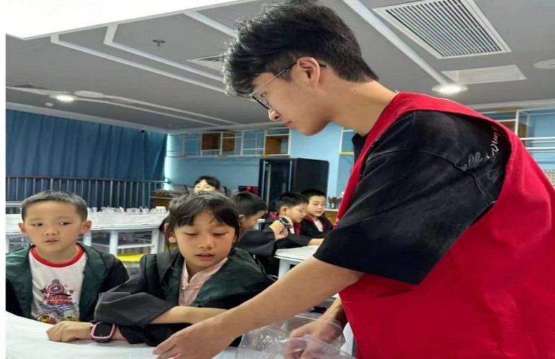 林濤宇同學(xué)為孩子們分發(fā)材料