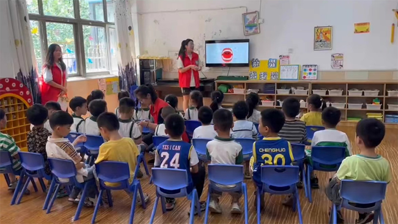 7月25日,江蘇醫藥職業學院“醫護健康,伴我行”實踐團徐州籍志愿者深入社區的其樂幼兒園,為暑期托兒班的小朋友開展了以“關注兒童健康”的宣講實踐活動。
