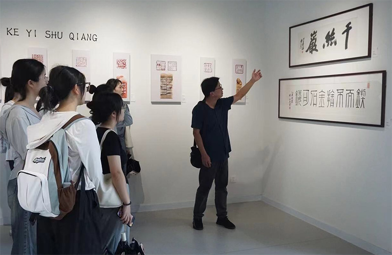 實踐團隊前往的第一站是麗水市蓮都區的夏法起石印藝術館。在參觀石印藝術館的過程中,指導老師徐詠平為團隊成員講述了印章石料的種類和原產地,介紹了“天下第一社”西泠印社社員的印雕、篆刻、書畫作品。此外,實踐隊成員還自主參觀了多樣精美印章雕刻作品和我國瀕危的印石品種標本,全面了解了我國當代石印藝術印材、印雕狀況和西泠印社的印雕、篆刻、書畫技藝。