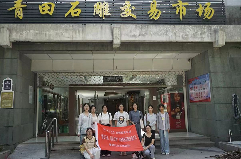 近日,為傳承青田石雕非遺文化增強大學生民族自豪感與認同感,教師教育學院“青田石韻,雕影探幽”弘揚青田石雕非遺文化暑期社會實踐團隊一行人先后前往麗水市蓮都區和青田縣開展對青田石雕非遺文化的調研活動。