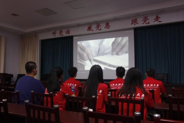 實踐隊在塔元莊村村史館觀看紅色宣傳片《蝶變塔元莊》