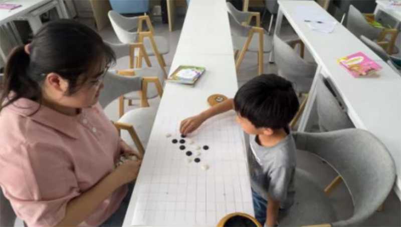 午后時分,活動室搖身一變成為了一個小小的“棋藝天地”。志愿者們組織了一場別開生面的下棋活動,包括中國象棋、圍棋和國際象棋等多種棋類。在志愿者的指導下,小朋友們或凝神思考,或興奮對弈,每一次落子都閃耀著智慧的光芒。通過下棋,孩子們不僅鍛煉了邏輯思維和決策能力,還學會了尊重對手、勇于挑戰的精神。