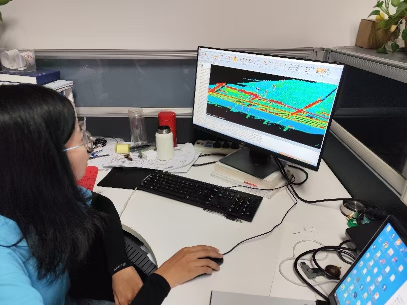 8月8日至9日,團隊成員實地考察東淀臺頭安全區,并在測繪人員帶領下,了解無人機操作方法,操控無人機循環飛行拍攝,利用搭載的激光雷達和工業相機,對控制點和圍堤進行定位掃描拍攝,并實時觀測遙控儀器反饋的拍攝內容,獲取地理信息數據成果。