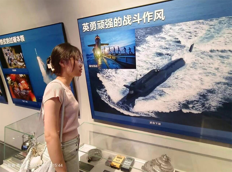實(shí)踐隊(duì)隊(duì)員于 2024 年 7 月 11 日到達(dá)中國人民解放軍海軍博物館。這里的歷史畫卷和珍貴文物訴說著中國海軍的輝煌與艱辛。他們仿佛穿越時空,見證了中國海軍從無到有、從弱到強(qiáng)的蛻變。參觀過程中的互動式展覽,通過模擬操作,親身體驗(yàn)了海軍日常訓(xùn)練,深刻理解了海軍官兵的付出。博物館通過藝術(shù)作品和歷史故事展現(xiàn)的海軍官兵英雄事跡和崇高精神,更是激發(fā)了他們內(nèi)心的愛國情懷。