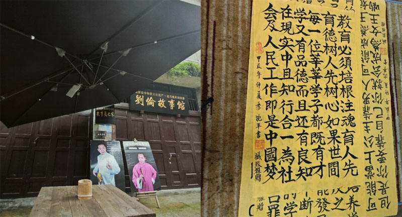 即將走出古鎮時,一塊“非遺傳承人”的牌子吸引了成員的注意。上前交流后,實踐團成員得知這是一位洪門拳法的傳承人。他提到非遺文化不應只被當作展示的對象,更應該將其應用到日常生活實踐中,造福當地,才能得到真正的發揚和傳承。他的堅守和執著讓成員們深感敬佩。