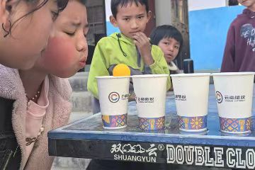 最后,支教隊員們帶領同學們開展了趣味運動,進行乒乓球過河游戲。孩子們分組進行挑戰,用嘴巴吹氣,使乒乓球順利“渡”過裝滿水的容器。通過這個趣味游戲,孩子們在輕松愉快的氛圍中鍛煉了能力,也加深了彼此之間的友誼。