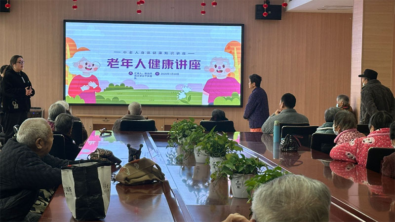 在文藝表演的間隙,同學們還穿插了健康知識科普環節。醫學院的同學們化身“小講師”,為老人們講解冬季常見疾病的預防和保健知識。他們用通俗易懂的語言,結合生動形象的案例,向老人們介紹了如何預防感冒、流感以及心腦血管疾病等。為了讓老人們更好地理解,同學們還現場示范了一些簡單的保健動作,如頸部按摩、手部操等,老人們紛紛跟著學習,現場互動十分熱烈。