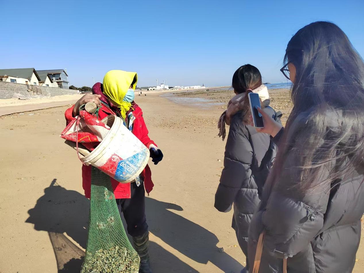 圖為實(shí)踐隊(duì)員采訪趕海游客