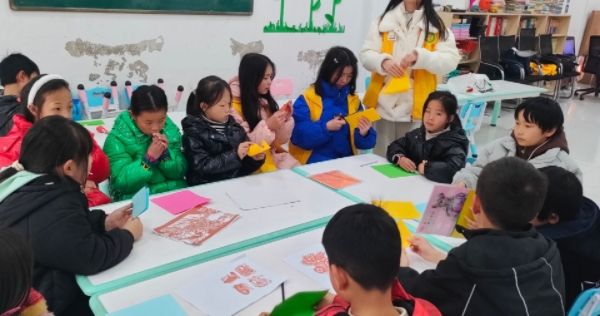 圖為實(shí)踐隊(duì)為小朋友們進(jìn)行作業(yè)輔導(dǎo)